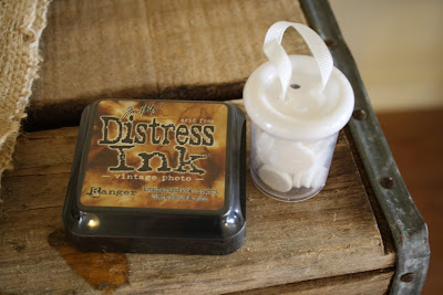 Lastly, just a couple of little items. This Distress Ink is awesome and I use it on paper and wood items. I included some white buttons because I just love buttons! : )
