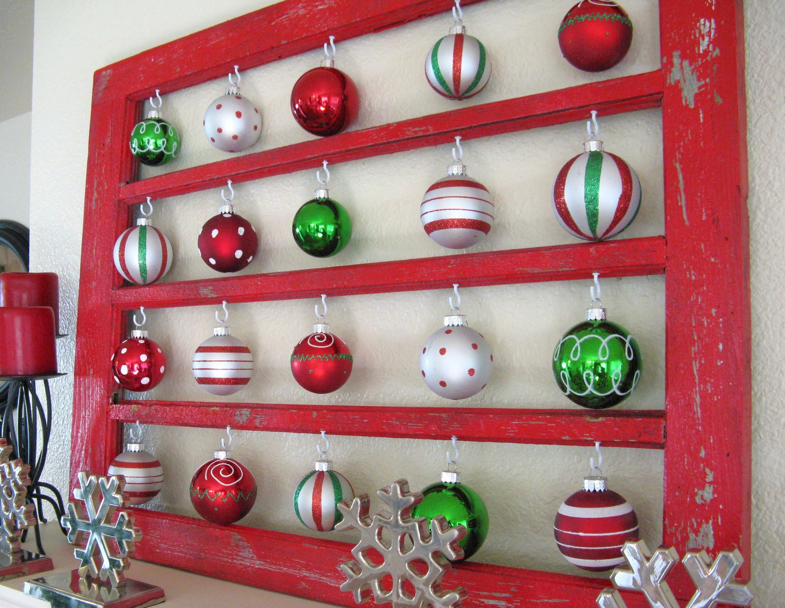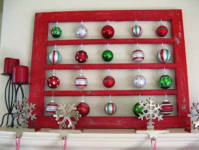 Last year I created my Window Ornament Holder out of an old window that I had laying around. When I came up with the idea I had no idea how it would turn out, I was sorta improvising as I went. I was thrilled with how it turned out! It offers a great amount of color to my Christmas mantel and I just love the hanging ornaments!