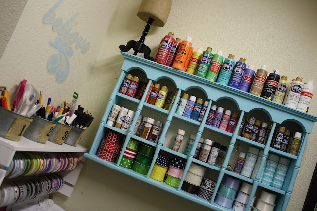 You may remember this little beauty from a Thrifty Thursday a couple weeks ago. I gave it a coat of paint and it instantly became some craft paint and ribbon storage. Looking for potential storage items at thrift stores and garage sales is a great way to stretch your organizing dollar. It’s amazing what a can of paint and a little elbow grease can do to thrifty finds to keep your space looking pulled together and ORGANIZED!!!!