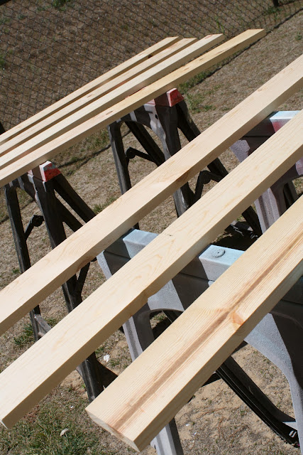 Once the boards were cut it was time to do some staining. I used Minwax wood stain in Dark Walnut. The dark color of this stain is right up my alley!!! I used a couple coats of wipe on Polyurethane to protect the wood.