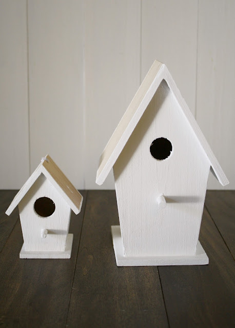 I picked up a couple craft wood birdhouses at the craft store. I decided to grab two different sizes, I figured they would look nice sitting next to each other on a shelf.