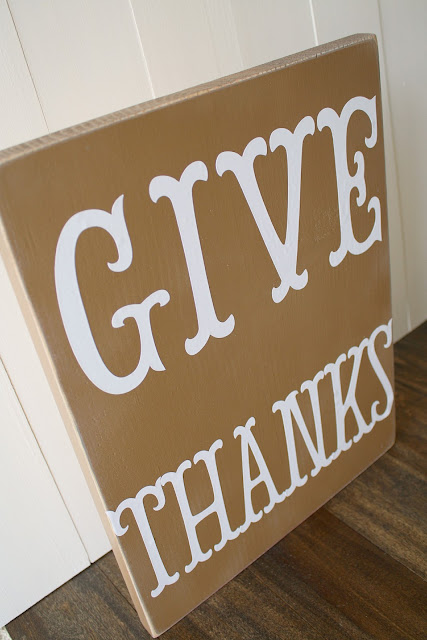 Well the other day I had a little bit of a crafting oops….a sign I had planned didn’t quite pan out. However I still had a painted wood sign just lying around and I try to not waste anything crafty!!! So I decided to create a new Give Thanks Sign.